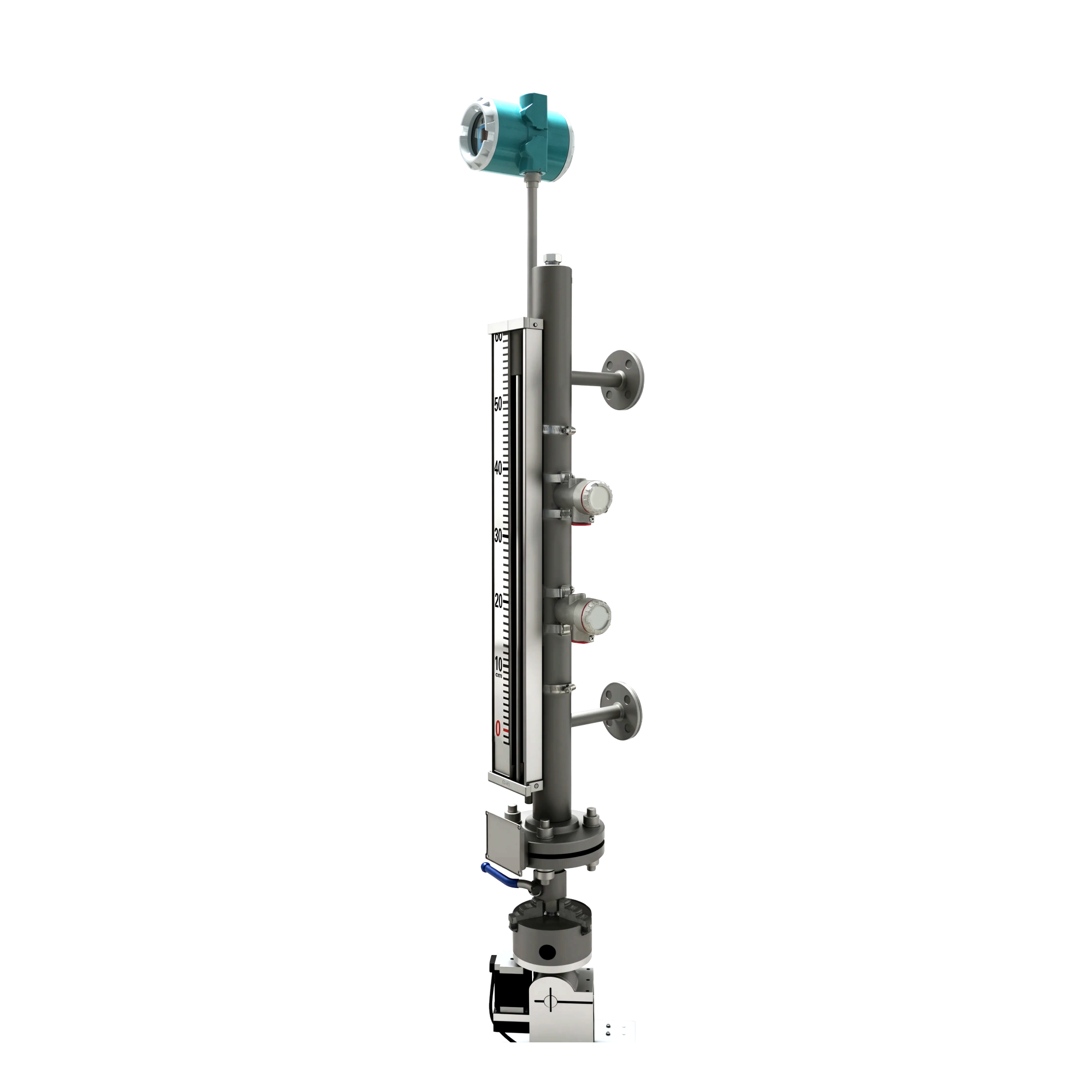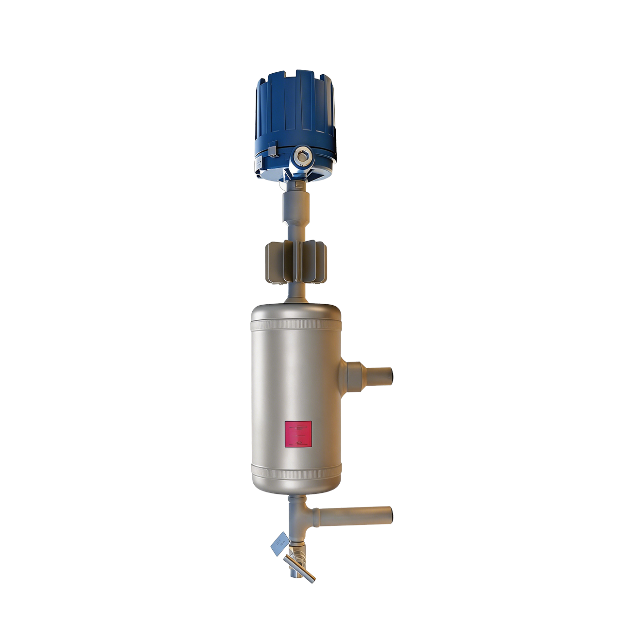 Vertical High-Temperature & High-Pressure Float Level Switch, Sandblasted Stainless Steel with Blue Housing and Side Short Tube